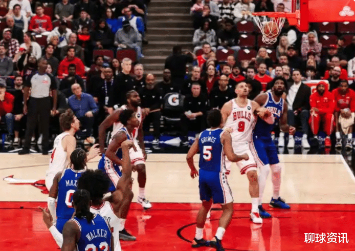 公牛加强防守,让 76 人单节仅得 20 分(三分 5 中 0)。布泽利斯三分 + 吉迪串联进攻,公牛单节打出 28-20,将分差缩小至84-95,仅落后 11 分。